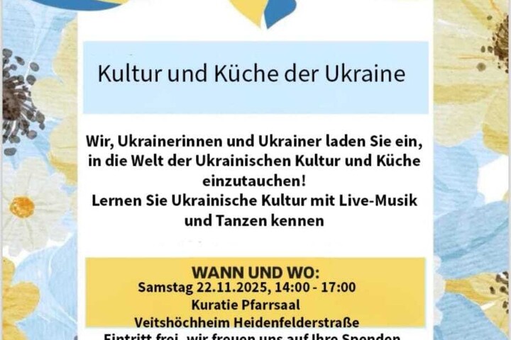 Vorankündigung: Am 22.11.2025 findet im Pfarrsaal der Kuratie eine Ukrainie-Benefizveranstaltung statt. Nähere Informationen finden Sie auf den Plakaten, die zeitnah veröffentlicht werden.
