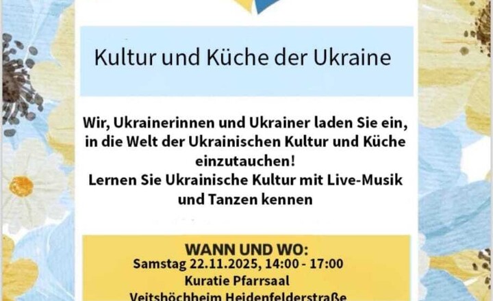 Mittwochs, 14-tägig von 14:30 bis 16:00 UhrCaritas-Sozialstation St. Stephanus, Bahnhofstraße 11a, Veitshöchheim Sie können sich bei einem Kaffee oder Tee mit anderen Geflüchteten aus der Ukraine austauschen und Ihre Kommunikation in Deutsch verbessern.Vorankündigung: Am 22.11.2025 findet im Pfarrsaal der Kuratie eine Ukrainie-Benefizveranstaltung statt. Nähere Informationen finden Sie auf den ...